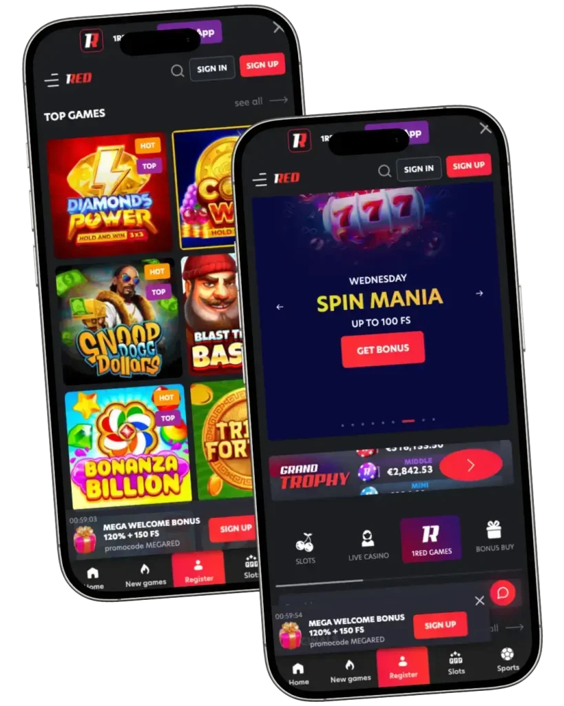 Our gambling program is user-intuitive and secure as well as is enabled for fast deposits and withdrawals. This program is designed to bring you closer to our vast selection of slots, card and wheel titles. The 1RED online app also makes reaching customer support more convenient, as you can use it in multiple languages.