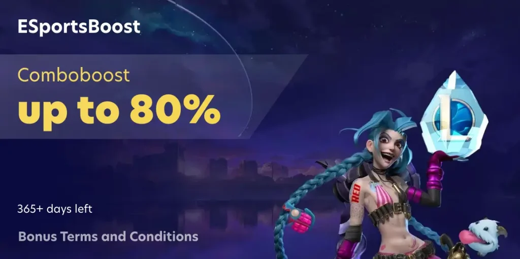 | ESportsBoost | Up to 80% Comboboost | Designed for esports fans. Get up to 80% extra on winning combos from Dota 2, CS2 or LoL events. |