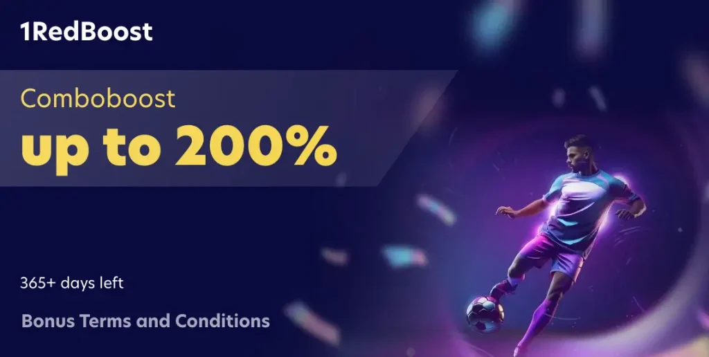 | 1RedBoost | Up to 200% Comboboost | Boost your combo bets by up to 200%. The more selections you add, the higher your multiplier. The offer is best for football and tennis 1RED online betting UK. |